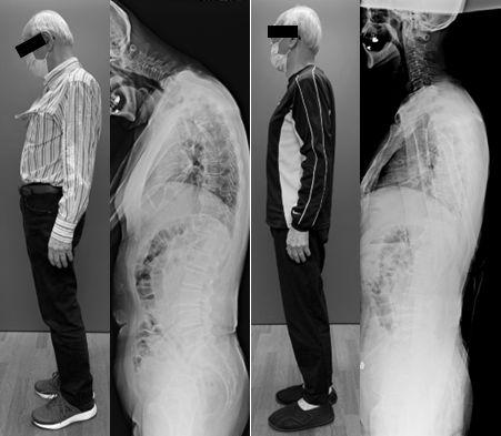 Diseases with abnormal spinal alignment, such as kyphosis, lordosis, scoliosis, and dropped head syndrome (DHS), are increasingly common, especially in older adults. DHS is characterized by excessive forward tilt of the head and neck, leading to difficulty in lifting the head and symptoms like neck pain, impaired flexion, difficulty walking, eating, dysphagia, and skin ulcerations. Causes include neurological disorders, muscle diseases, and cervical spondylosis, but the exact mechanism remains unclear.