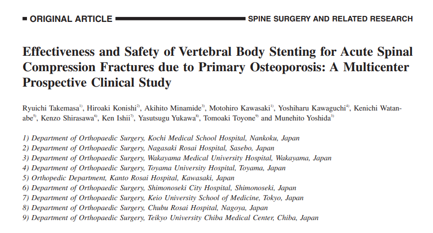 低侵襲経皮的椎体形成術の椎体ステント留置システム(VBS)に関する論文が掲載され…